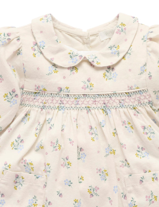 Purebaby - Fleece Zip Growsuit Floral Fleece