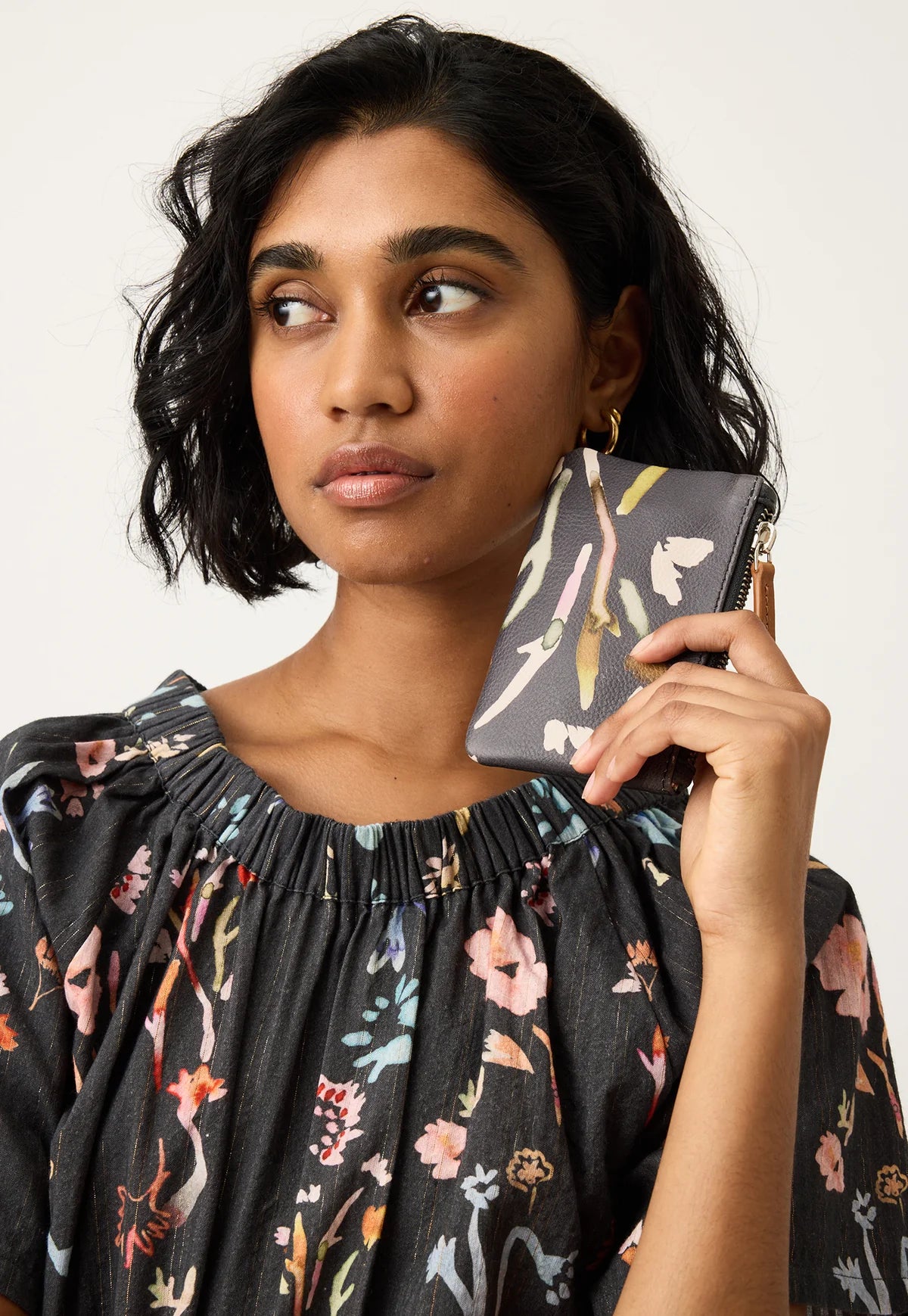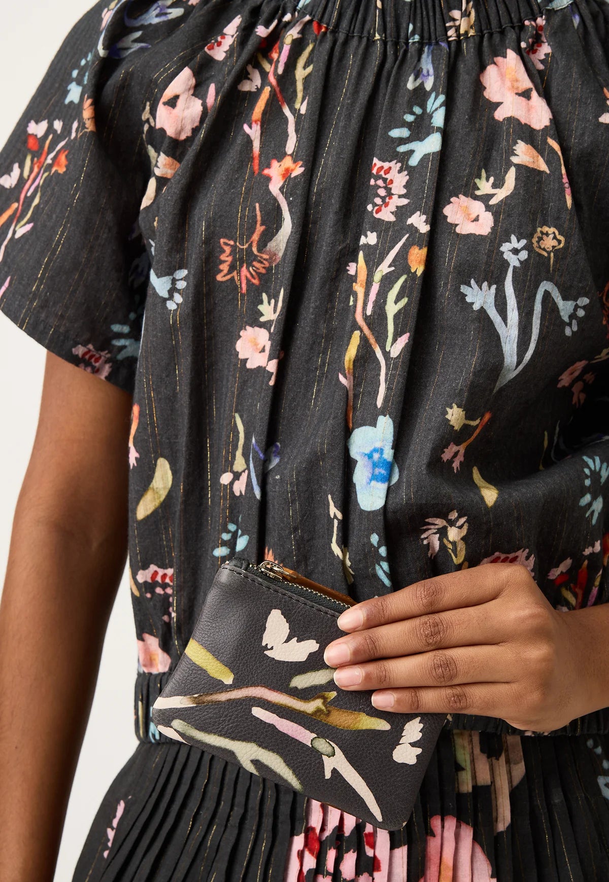 Small zip purse in digitally printed leather featuring our seasonal print by Emily Wright.