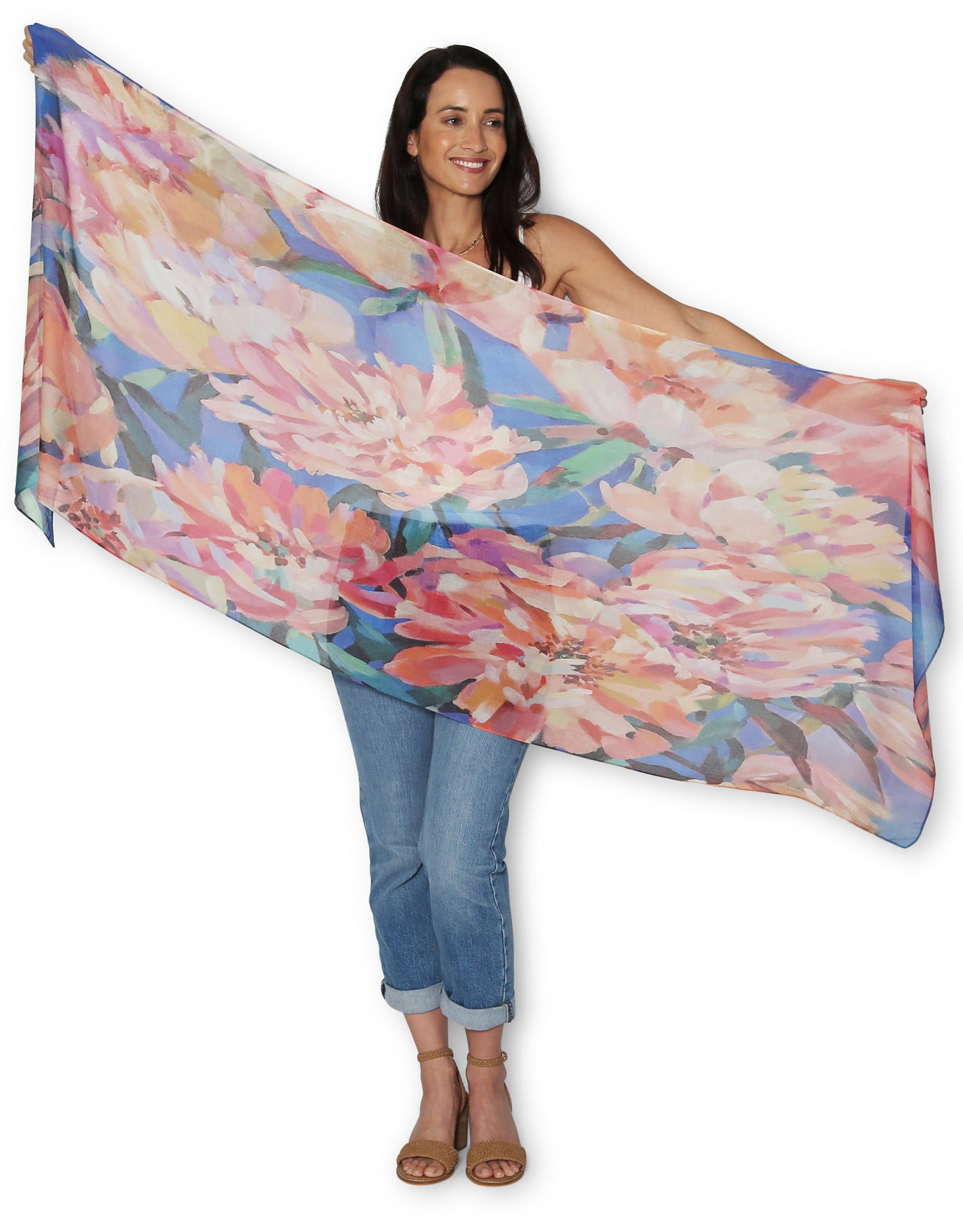 More details: Lightweight design, easy to carry around, rectangle shape, hand designed by a real artist. All scarves come in a gift box.